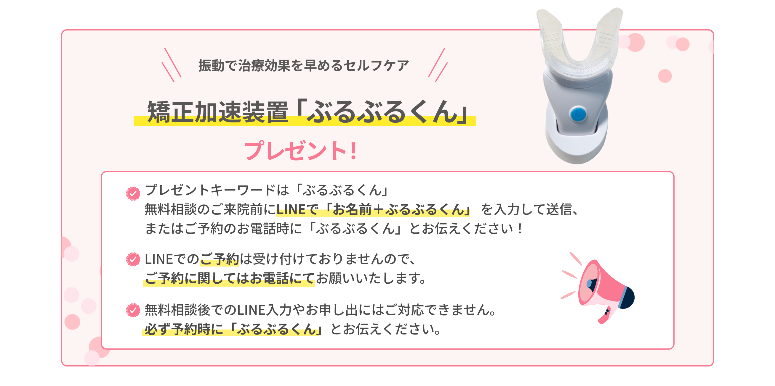 矯正治療の患者様は、当院で実施している予防プログラム(通常11,000円)を無料でお受けいただきます。お口の状態を万全に整えてから矯正治療に臨むことができます。